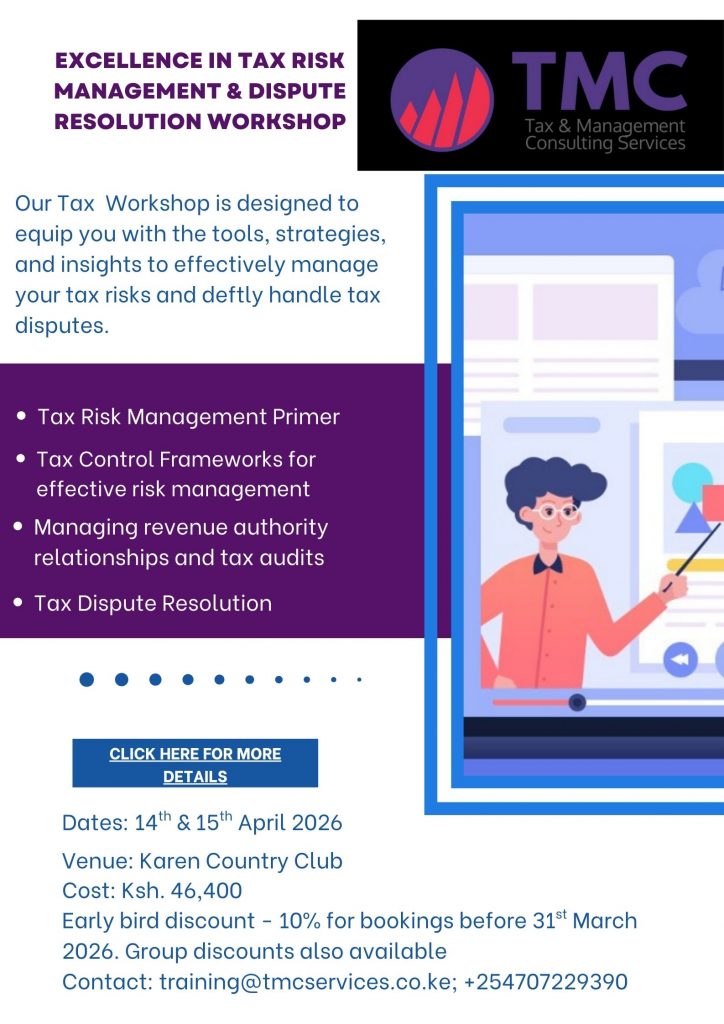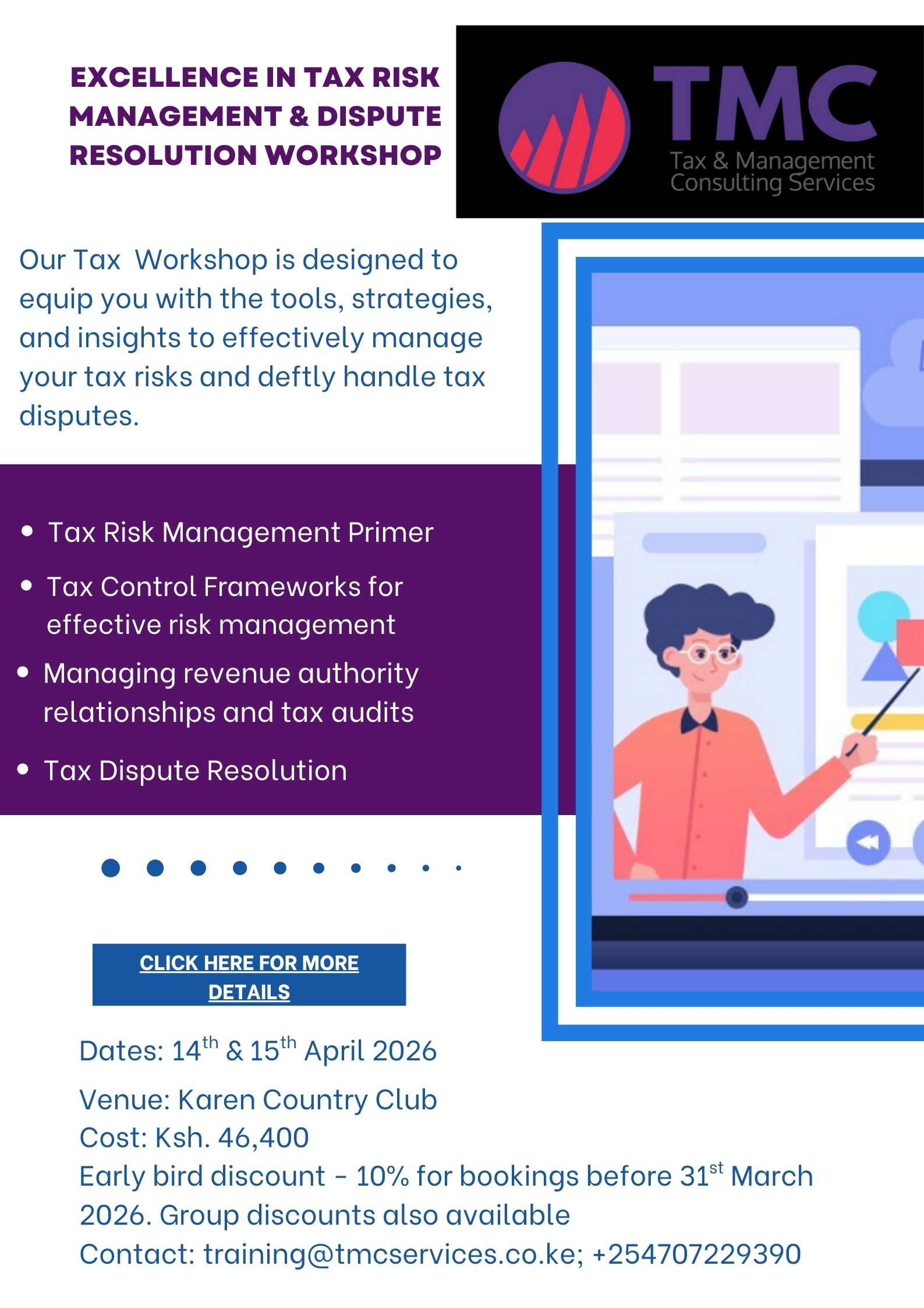 David developed this workshop as a response to the challenges that he has helped organisations to navigate with respect to tax compliance, strategy and planning, and in dealing with and resolving various tax disputes, right from managing audits to objections, disputes at the Tax Appeals Tribunal and eventual settlement of cases.